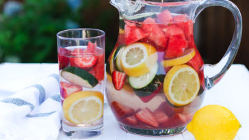 If plain water is too bland or if you’re trying to beat a cold, consider adding lemon to you water before bed. This can give an interesting flavor to the water, and lemon also contains vitamin C, an added benefit that can help to boost your immune system as it fights infection.