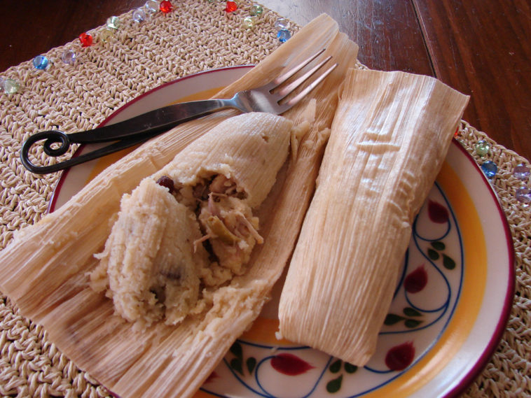 The word “tamale”, or tamal in Spanish, derives from the Aztec word of the Nahuatl language, tamalli, meaning “wrapped food.” Europeans brought chicken, pork, olives, raisins and other foods with them to the new world and tamales became more elaborate.