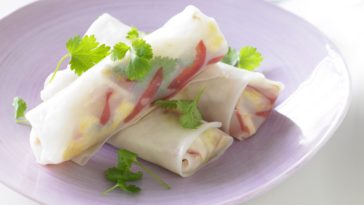 The great thing about rice paper is they don’t have to be cooked to eat as long as they have been softened. That means you get a healthy wrapper that is free of oil and fats. All that’s in the wrapper is white rice flour, tapioca flour, salt, and water.