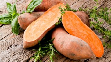 But unlike regular potatoes, which contain the dangerous enzyme solanine in their raw state, sweet potatoes can actually be consumed raw. … Sweet potatoes are high in Vitamin A and C, fiber, potassium, and iron, and are a relatively low-calorie addition to your smoothie blend.