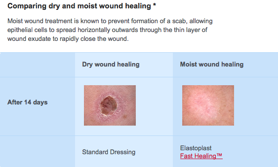 A handful of studies have found that when wounds are kept moist and covered, blood vessels regenerate faster and the number of cells that cause inflammation drop more rapidly than they do in wounds allowed to air out. It is best to keep a wound moist and covered for at least five days.