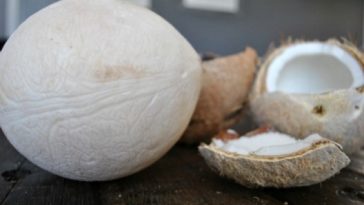 When you pick a coconut, you should pick one that doesn’t have any cracks in it and feels heavy and full. Put it up to your ear and shake it. It should sound like there’s water in it. A browner coconut will have more white meat on the inside, while a green coconut will be filled with more electrolyte-filled juice.