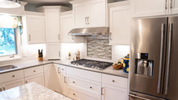 White looks great in the kitchen. When it’s time to update your cabinets, staining them white can be an affordable and beautiful option.