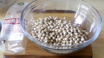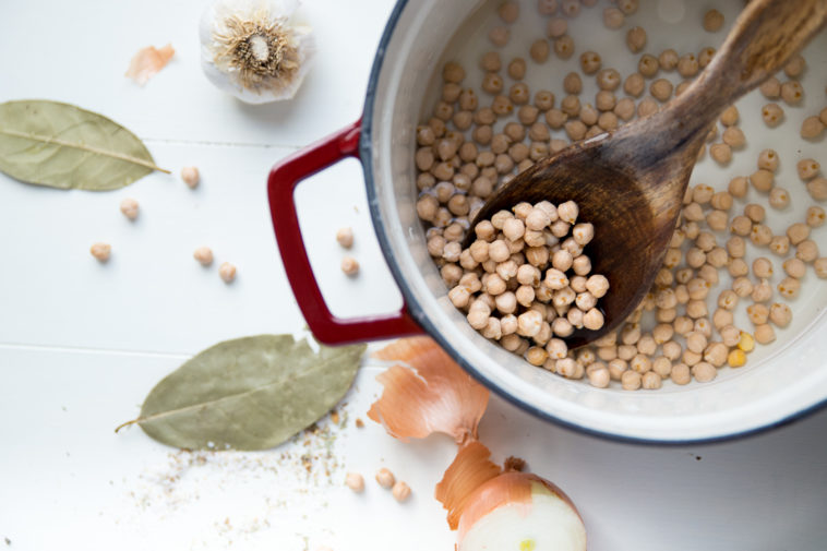 If you forgot to soak chickpeas overnight, don’t worry. You need nothing more than water and a stockpot or large saucepan. Put rinsed chickpeas in the pot, add 3 cups of water for every 1 cup of beans, and bring the mixture to a boil over high heat. Use a spoon to remove any foam that rises to the surface.