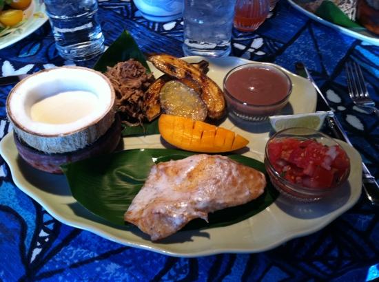 : an Asian dish served as an appetizer or main course and consisting of a variety of foods (such as egg rolls, spareribs, and fried shrimp) pupu platter.