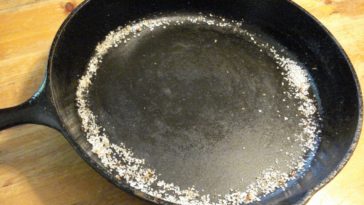 - Take a clean rag and scrub the salty/soapy skillet vigorously with it.