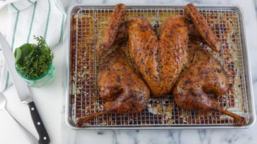 Roll up a few small balls of aluminum foil place them on the bottom of your slow cooker bowl to serve as a “rack” for the chicken, so that it doesn’t cook in the juices that will accumulate in the bottom of the slow cooker.