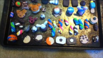 To bake polymer clay, preheat your oven to the manufacturer’s advised temperature (usually 230°F – 275°F). Baking times are typically 15 – 30 minutes for each ¼ inch thickness. Thinner clay needs 15 minutes to cure. When cool, properly baked clay can be marked with a fingernail, but it won’t sink in.