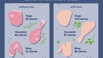 Darker cuts like the thigh and drumstick contain higher caloric content than lighter cuts like the breast. Keeping the skin or frying chicken will also add saturated fat. If you’re switching out red meat for chicken, you’ll want to stick with chicken breast, as it’s the healthiest cut of the bird.