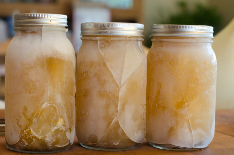 If you’re trying to avoid excessive use of plastic in the home, glass mason jars are a great reusable option that you likely already have around. You can freeze liquids in mason jars and store them for several months in the freezer. But! If you aren’t careful, the glass may crack or shatter as the liquids solidify.