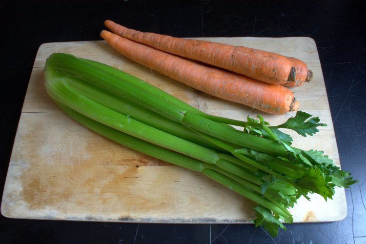 - Cut the carrots and celery into the desired sizes: sticks, coins, etc.