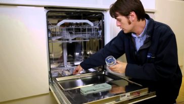 To deep clean your dishwasher, remove any foreign material you can find from the drain. Place a bowl full of white vinegar on the top rack and run a complete wash cycle on the hottest setting. Then sprinkle a handful of baking soda across the bottom of your dishwasher and run for a short hot water cycle.