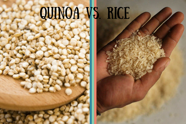 Quinoa is rich in both fiber and protein, contains a much higher amount of other nutrients, and has a similar fluffy texture to the rice. A cup of quinoa contains twice more protein and about 5 g more fiber than white rice. Quinoa contains fewer calories and carbohydrates than white rice.