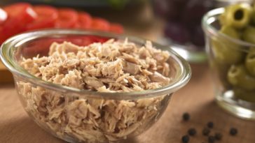 Canned white tuna has a lot going for it. It is lower in fat than chicken, low in saturated fat, high in protein and contains heart healthy omega-3 fatty acids.