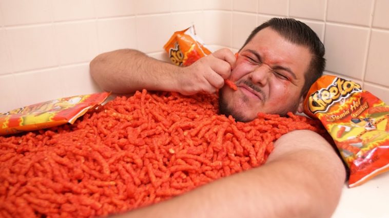Because the spicy snack contains a lot of red food dye, it can turn the stools of people who eat large quantities red or orange. Parents and kids may mistakenly assume that it is a sign of blood in the stool, leading to panicked trip to the hospital.