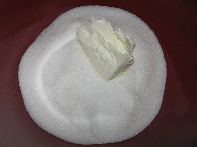 Cream cheese spread that contains about 30% fat (or a little less) is ok to use. The cheese should have a thick consistency. Low fat cheese is more thin, and if you use it, the cheesecake won’t be as rich or dense. The ingredients are mixed in a mixer in a low-medium speed.