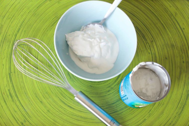 The secret to making a dairy-free whipping cream is to add fat to soya cream. For the best results, use pure vegetable fat straight from the chiller. … 2 Warm the soya cream mix gently until the vegetable fat melts.