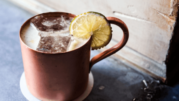 Copper mugs are known as the perfect vessel for an ice-cold Moscow mule. The insulating properties of copper as a metal keeps Moscow mule icy cool even during scorching summer days. Try this recipe with a gorgeous set of hammered copper mugs for a more refreshing drinking experience.