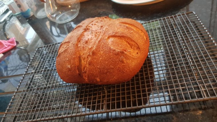 The steam that is trapped inside needs to move towards the outside. It’s not until all of this steam has escaped that your bread actually finishes cooking. Cutting it too soon stops your sourdough from completing the cooking process and results in a gummy, wet texture when you cut it.