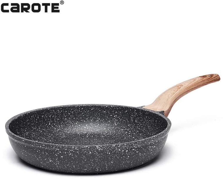 Granite rock pan features even and fast heat distribution across the cookware. Foods won’t stick if some amount of oil or butter is used on the granite stoneware pan for greasing before cooking.