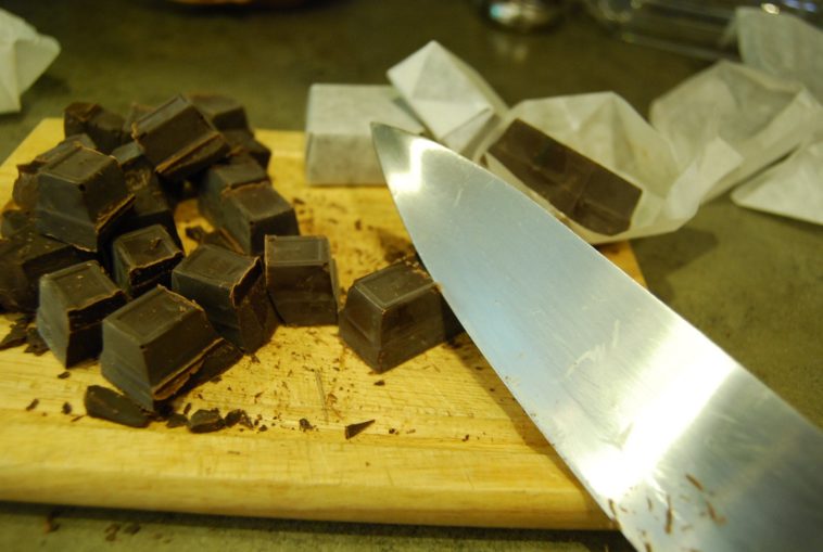 Chocolate measures as follows: 1 square of chocolate is equal to 1 ounce.