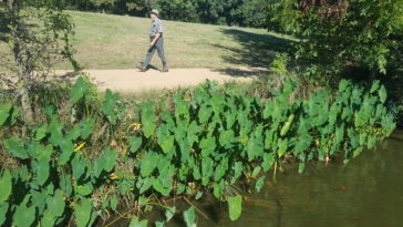 The tropical elephant ear plant is a sight to behold and not one many will forget. … There are no alleopathic properties in the corms, but this can be an invasive plant and the excessive size may pose problems for species that live under the giant foliage.