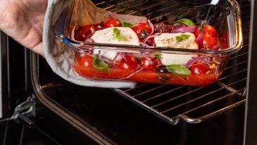 Something to keep in mind is that you should reduce baking temperature by 25 degrees and check the food often as it may be ready up to ten minutes earlier if you are substituting a glass dish for a metal baking pan. This is because glass doesn’t heat up as quickly as metal but will become very hot once heated up.