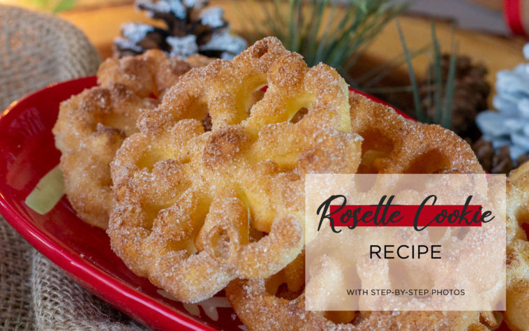 Store rosettes in a loosely covered container to keep crisp. They’ll keep 2-3 days. To serve, reheat in a warm oven. A rosette irons typically has a long metal handle with wooden hand-hold, to keep your hands away from the hot oil.