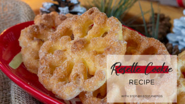 Store rosettes in a loosely covered container to keep crisp. They’ll keep 2-3 days. To serve, reheat in a warm oven. A rosette irons typically has a long metal handle with wooden hand-hold, to keep your hands away from the hot oil.
