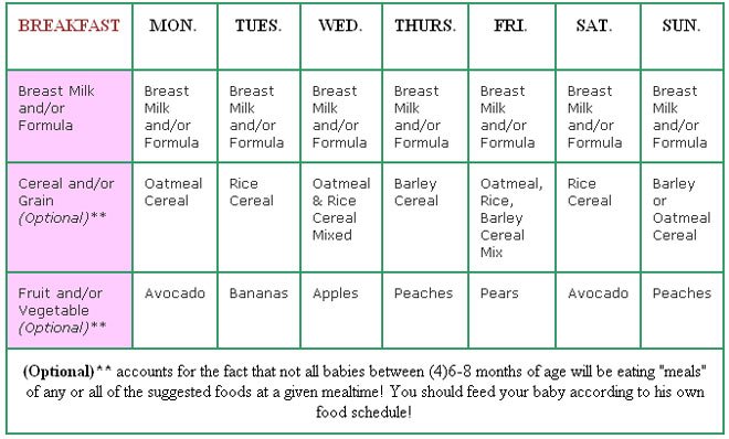 The American Academy of Pediatrics says that for most children, you do not need to give foods in a certain order. Your child can begin eating solid foods at about 6 months old. By the time he or she is 7 or 8 months old, your child can eat a variety of foods from different food groups.