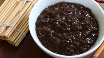 Black bean sauce is also known as black bean paste, black bean garlic sauce, or Tochidjan. This sauce is prepared from douchi, garlic, soy sauce, ginger, and sugar.