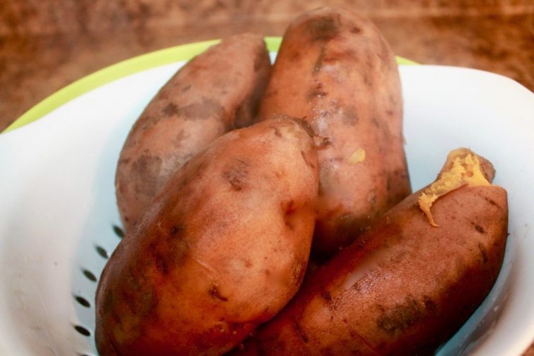 1) Starchy potatoes (russets and many sweet potatoes): Great for baking and frying as they’re absorbant. 2) Waxy potatoes (red-skinned and fingerling potatoes): These potatoes are great for soups and salads because they hold their shape so well during cooking.