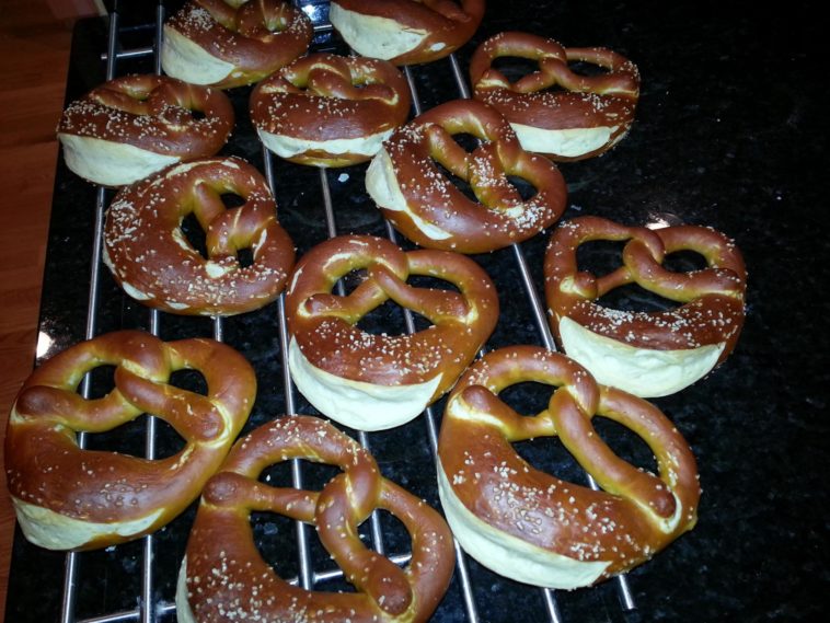 The secret to making a pretzel is by giving it a bath in liquid diluted lye before baking it. Lye is a highly concentrated alkaline solution that gives the pretzels its unique taste and dark brown color.
